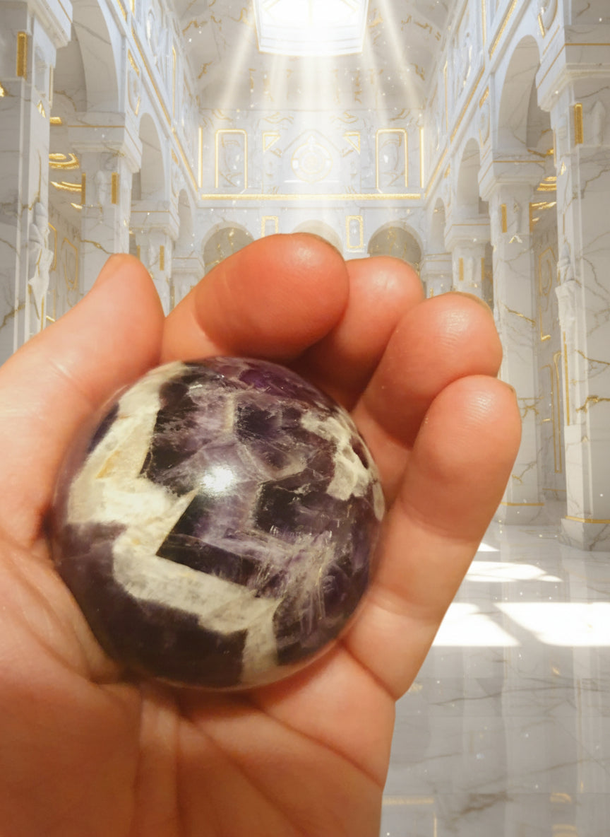 Ett hĂ€rligt dröm-ametist klot ⥠Med drömlika mönster kĂ€nns den helt magisk đ
