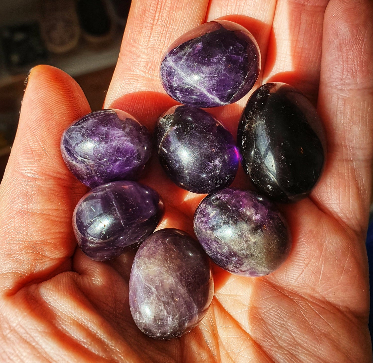 Dessa ametister bär en djupt violett frekvens av frid och stillhet.