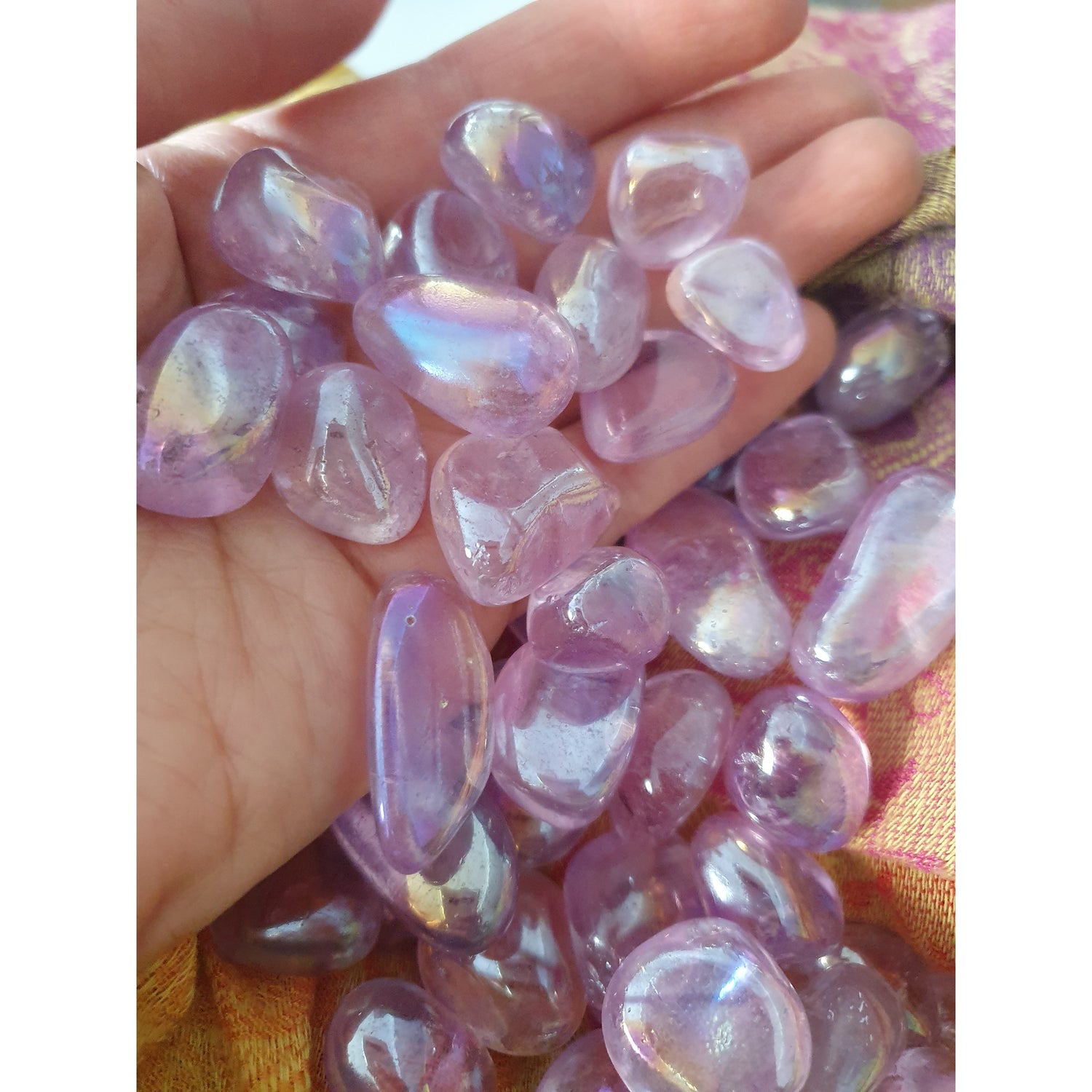 Dessa ljusa ametister Àr förÀdlade med en skimrande angel aura som vÀcker stillhet, renhet och kontakt med de högre dimensionerna.